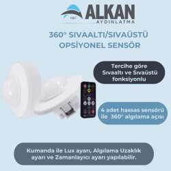 Kumanda ile Lux ayarı, Algılama Uzaklık ayarı ve Zamanlayıcı ayarı yapılabilir.